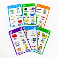 アルファベットカードの単語の末尾から、該当するカードを見つけて読み上げる「しりとり」ゲームです。合計で150の単語を遊びながら覚えることができます。