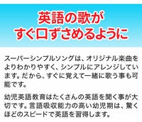 子供たちでも英語を「聞ける」「歌える」と大評判の本作。とにかくシンプルにアレンジした楽曲は、聞き取りやすくてすぐ覚えられると英会話の先生や保護者にも大好評です。