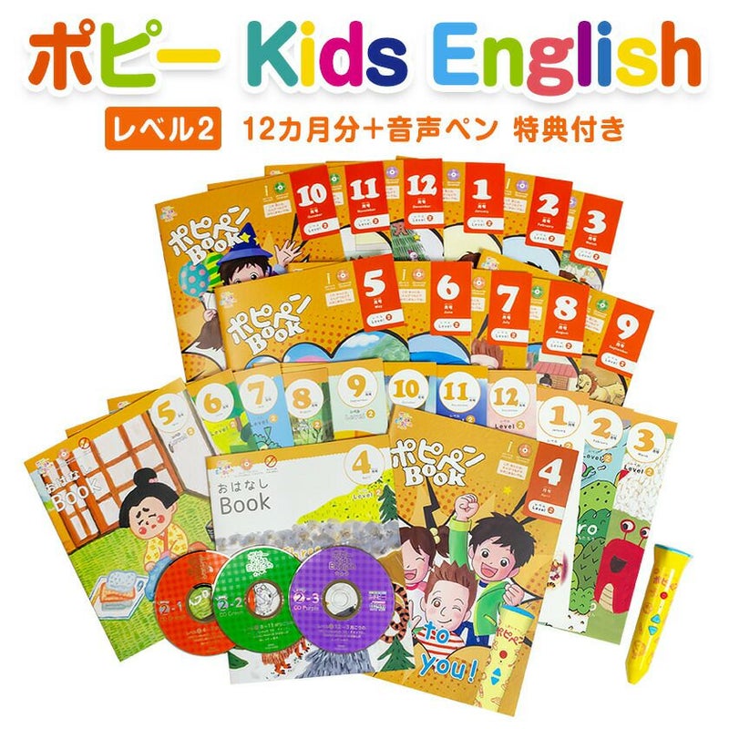 ポピー Kids English レベル2 12ヶ月分+ 音声ペン ポピペン