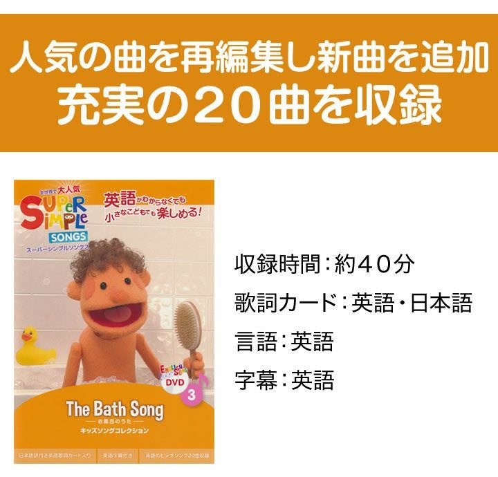 他の画像を見る 英語歌 幼児 絵本のような英語ソング マザーグース フォニックス 子ども 英会話 赤ちゃん 英語 ナーサリーライム 誕生日プレゼント 英語の歌 誕生日 幼児英語 DVD Super Simple Songs The Bath Song 価格 ¥ 2,189 税込 お気に入りに追加