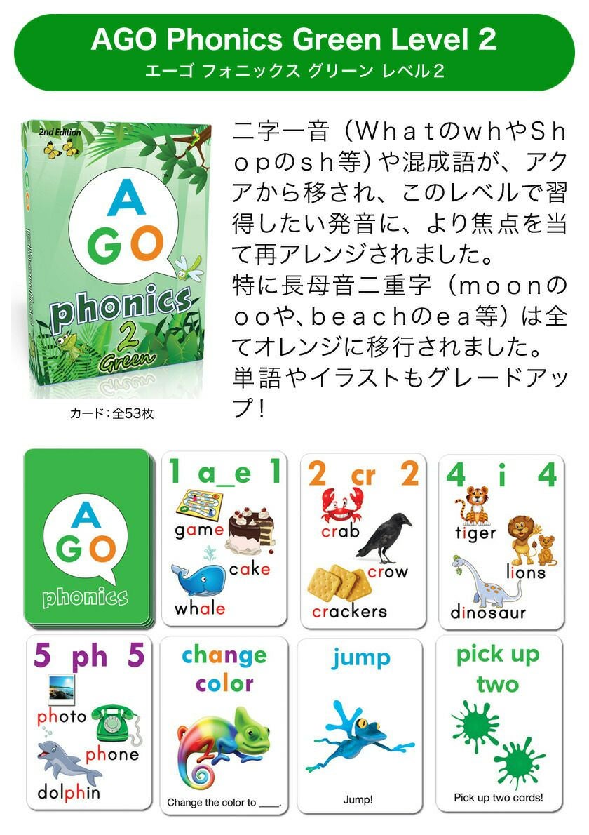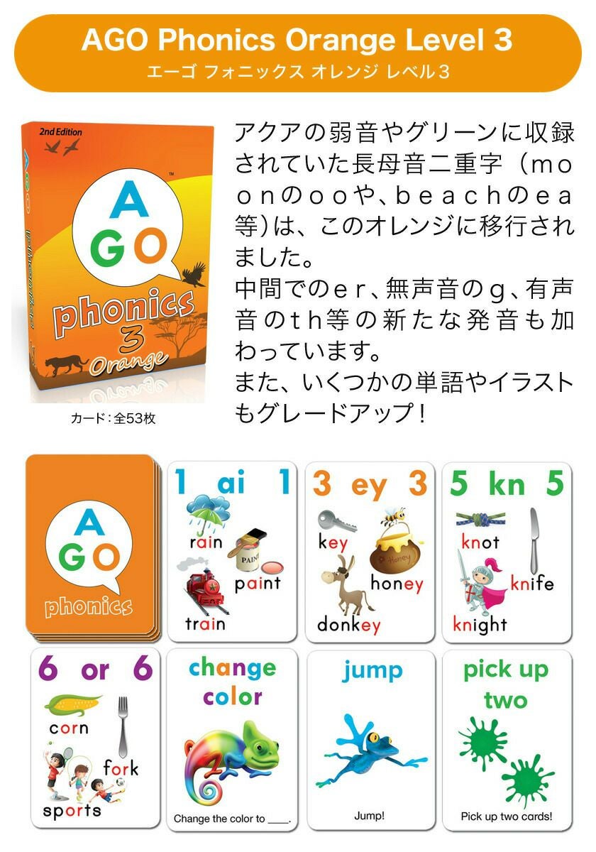 他の画像を見る 英語教材 英会話教材 AGO エーゴ フォニックス 4歳 5歳 6歳 7歳 子供 小学生 英語 教材 フォニックス 英単語 英語学習 英会話 小学 男の子 女の子 英語教材 AGO フォニックス カードゲーム 3レベルセット (第2版) ボックスセット 価格 ¥ 2,968 税込 お気に入りに追加