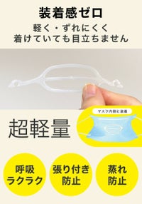 マスクと口の間に空間ができ、息がしやすく話すのがラクになるマスク補助グッズです。