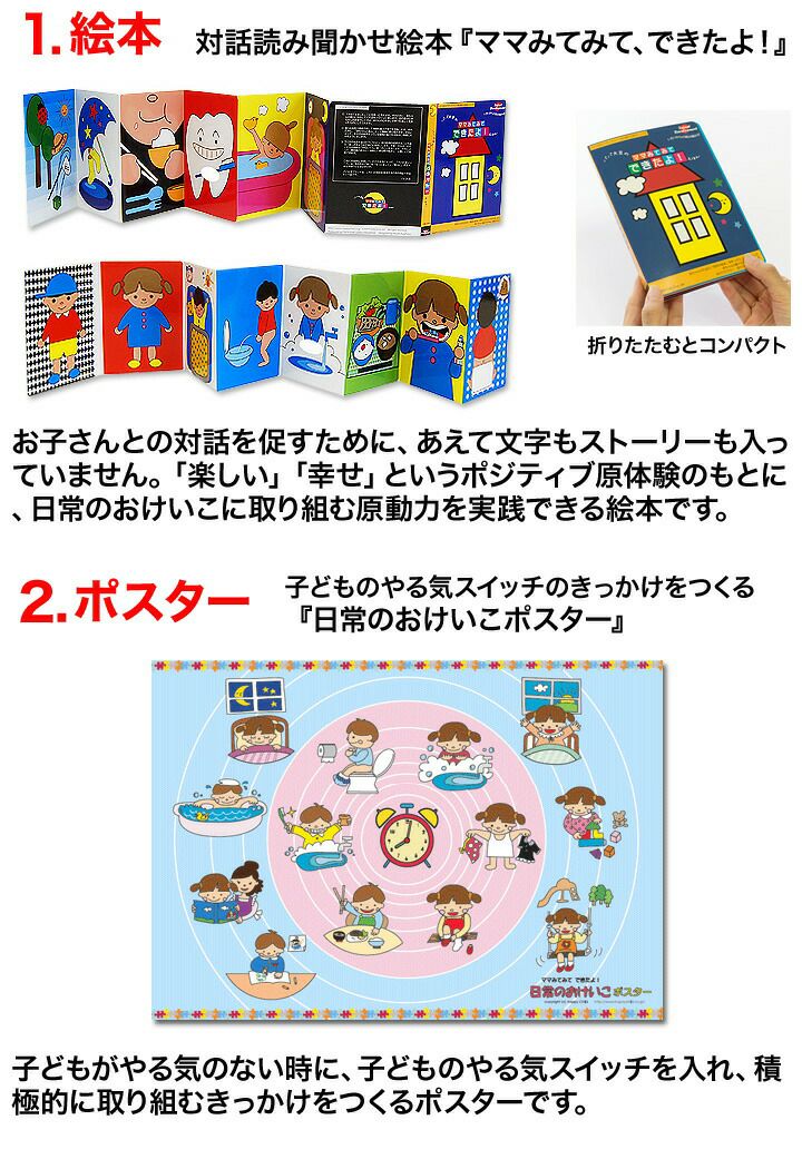 他の画像を見る 知育玩具 1歳 1歳半 2歳 3歳 幼児との対話型絵本 食事 トイレトレーニング お風呂 日常のおけいこ絵本 教材 幼児 絵本 おもちゃ 女の子 男の子 赤ちゃん パパ大豆の ママ、みてみて・できたよ!日常のおけいこ絵本セット 価格 ¥ 2,444 税込 お気に入りに追加