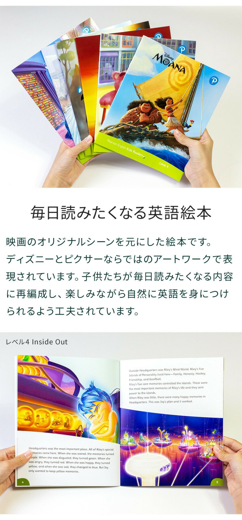 他の画像を見る ディズニー 英語絵本で英語上達 ディズニー グッズ 絵本 ライオンキング トイストーリー メリダ インサイドヘッド モアナ ファミリー 子供 おもちゃ グッズ 誕生日 プレゼント ディズニー 絵本 英語 Disney Kids Readers Level 4 Pack 価格 ¥ 9,500 税込 お気に入りに追加