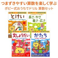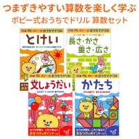 時計の読み方、長さや重さの単位、形、文章問題を楽しく学べる算数ドリルセットです。